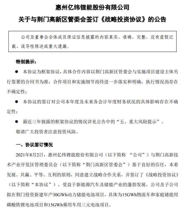 斥资36亿,亿纬锂能拟投建两项动力电池项目