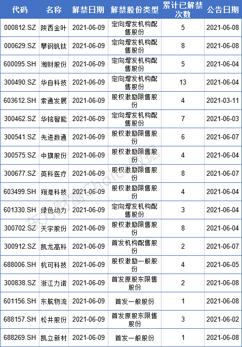 【解禁详情一览】