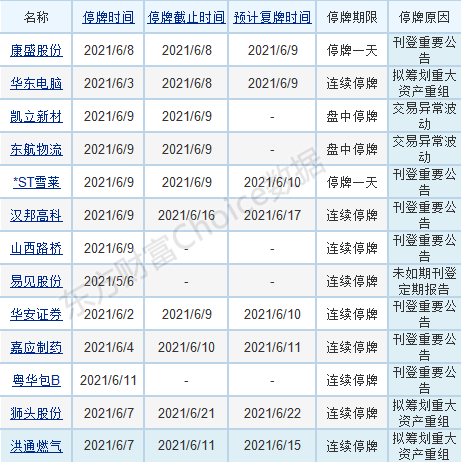 【两市停复牌一览】