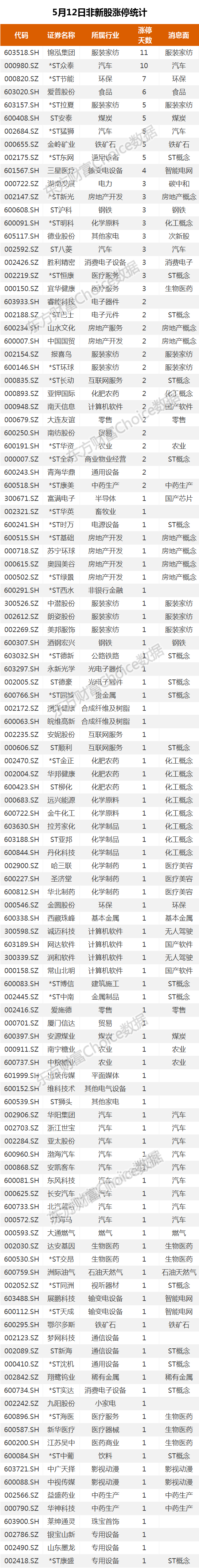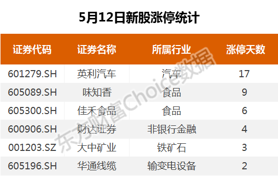 5月12日新股涨停统计
