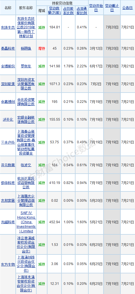 【股东增减持变动进展】