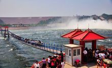 中水面296平方公里),全长175公里(上至三门峡大坝上游9公里,下至小浪底大坝36公里处)。由于该大坝位于洛阳市孟津县小浪底村,故而以小浪底命名了该工程。它由小浪底大坝、荆紫山、八里峡、三门峡大坝四个片区、13个景区、113个景点组成。310国道、207国道、连霍高速和二广高速从风 景区边缘通过,陇海铁路、焦枝铁路、洛阳机场近在咫尺,交通十分便利。风景区位于黄金旅游线路--河南"三点一线"上。地跨黄河南北两岸,南岸为崤山的东北余支,西接汾、渭盆地,东临华北平原,北岸有太行山和王屋山。风景区融小浪底工程文化、山水文化和历史文化为一体。地理位置黄河小浪底水利风景区位于黄河中游最后一段峡谷的出口处,南距河南省洛阳市40公里(小浪底大坝位于洛阳市孟津县小浪底村,距离洛阳市孟津县县城7公里),北距河南省济源市30公里。310国道、207国道、连霍高速和正在建设中的太澳高速从景区边缘通过,陇海铁路、焦枝铁路、洛阳林。南岸黄鹿山为该景区最高点,从这里可俯视大坝全景,又可以感受到大自然的美丽景色。小浪底风景区景色优美壮观。机场近在咫尺,交通十分便利。景区又处在国家黄金旅游线路河南"三点一线"的中心部位,该景区地跨南北两岸,南岸为崤山的东北余支,西接汾、渭盆地,东临华北平原。北岸有太行山和王屋山,景区是以小浪底工程为依托,以山、水、林、草为特色的生态园。小浪底水利枢纽是治理开发黄河的关键性工程,属国家"八五"重点项目,工程于1997年截流,2001年底竣工。小浪底位于河南洛阳以北40公里的黄河干流上,上距三门峡水库130公里,下距郑州花园口115公里,是黄河干流三门峡以下唯一能够取得较大库容的控制性工程。小浪底水库位于穿越中条山、王屋山的晋豫黄河峡谷中,库区全长130公里,总面积278平方公里。小浪底大坝截流后,晋豫黄河峡谷与库区的柏崖山、红崖山、黄鹿山等20多个风景点及雄伟的水库大坝交相辉映,形成湖光山色、千岛星布、"高峡出平湖"的自然景观,使得小浪底水库同时成为由山水自然风光和水利工程组成的大型旅游区。小浪底 小浪底水库内大量的半岛、孤岛、险峰,使自然景观近有曲折蜿蜒的河湾,远有烟色浩淼的湖面。从码 头登舟,击水搏浪,出入高峡平湖,观赏沿岸山水风光,尽情领略母亲河的风采,以景观上的美、幽、奇、胜、典满足人们高尚的享受和回归自然的追求,在风格上既有田园风情的古朴典雅,又有现代时尚的豪华气魄。黄河三峡是小浪底与王屋山所孕育的精华,位于小浪底水库大坝上游20公里处,总面积40平方公里, 是小浪底风景区的精华所在。八里胡同位于黄河中下游最窄处,两岸断壁如削,中间河水奔涌,三条峡谷各具风采:孤山峡鬼斧神工,千切壁立;龙凤峡盘龙走蛇,曲折迂回;大峪峡开阔舒展,气象万千。特别是九蹬莲花栈,九蹬九级,次第升高,望之若莲花盛开,似出水芙蓉,号称"鲧山禹斧"。而且还有隋唐古栈道、陈谢大军黄河渡等多处丰富的文化胜迹,自然人文景点多达60 余处,是我国北方少有的山水景观,完全可以和长江三峡媲美。小浪底水库截流后,已经吸引了大量慕名而来的观光游客,他们对壮美秀丽的景色赞叹不已,小浪底誉为"小千岛湖",认为小浪底集三峡之险与漓江之秀于一体,成为新兴的旅游目的地。游览小浪底,可以由山西、河南两侧进入景区。小浪底库区总面积278平方公里,涉及山西的垣曲、夏县、平陆三个县,其中,垣曲县正位于水库回水区中段,水域面积占到库区总面积的60%水利面积小浪底工程坝址控制流域面积69.42万平方公里,占黄河流域面积的92.3%。水库总库容126.5亿立方米,调水调沙库容10.5亿立方米,淤沙库容75.5亿立方米,长期有效库容51.0亿立方米。小浪底工程的开发目标是以防洪、防凌、减淤为主,兼顾供水、灌溉和发电等。枢纽工程工程概况小浪底黄河小浪底水利枢纽工程是小浪底景区内最具特色的风景线之一。小浪底大坝位于洛阳孟津县小浪底镇,距离济源市30公里。小浪底大坝不仅是中国治黄史上的丰碑,而且是世界水利工程史上最具有挑战性的杰作,也是我国跨世纪第二大水利工程。总装机容量为180万千瓦(6台30万千瓦混流式发电机)地下发电厂房,高160米,长1667米的粘土斜心墙堆石坝,巍峨的进水塔,壮观的出水口,在不足一平方公里范围内拥有纵横交错的108条洞群等,使小浪底具备了防洪、防凌、发电、排沙等多项功能,是旅游者观赏黄河沧桑巨变的一大景观。一年一度的调水调沙活动,气势雄伟,媲美钱塘潮。水库蓄水后在大坝上游所形成的浩淼水面、曲折河巷与雄伟山势竞相生辉,构成了"北国山水好风光--黄河小浪底"。黄河三峡,融小浪底与王屋山和荆紫山的山水文化与历史文化于一体,是景区精华之一。位于小浪底水库大坝上游20公里处,总面积40平方公里。三条峡谷各具风采:八里峡位于黄河中下游最窄处,两岸断壁如削,中间河水奔涌;孤山峡鬼斧神工,千仞壁立;龙凤峡盘龙走蛇,曲折迂回。特别是九蹬莲花栈,九蹬九级,次第升高,望之若莲花盛开,似出水芙蓉,号称"鲧山禹斧"。峡谷景观独特,兼具我国山水风光中"南雄北秀"两大特色。河洛文化是小浪底风景区黄河历史文化的代表。位于小浪底大坝下游15公里处。河洛文化景区由汉光武帝陵、龙马负图寺、王铎故居等景点组成。王铎故居收藏有王铎书法代表作品《拟山