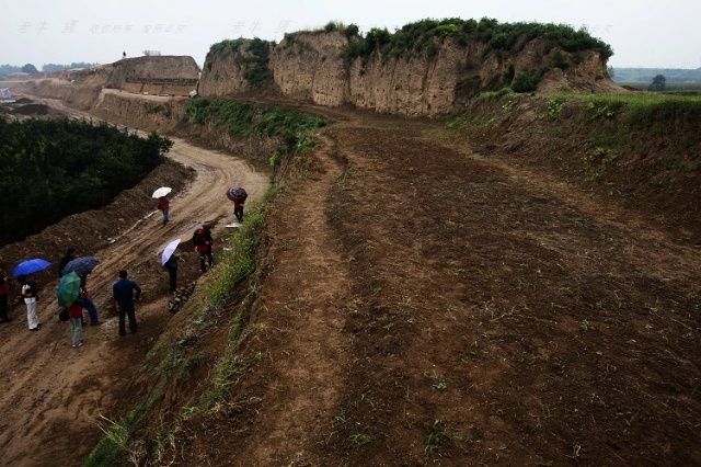 痕迹尤存。在部分城墙上还发现有向城外突出的墩台,西墙北段有 4座,北墙东段有 3座。墩台间距为110~120米,类似后世城墙所筑的"马面"。在城墙外侧均发现有护城河遗迹。北魏外郭城破坏殆尽,现存南郭城少量夯土垣墙残段。