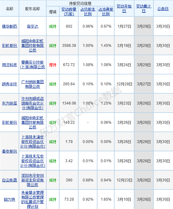 【股东增减持变动进展】