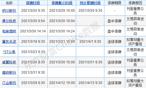 【两市停复牌一览】