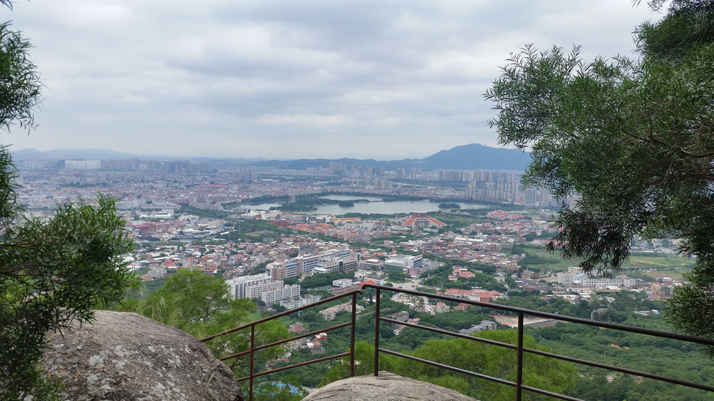 将军岩俯瞰:泉州市。中间的大湖是西湖公园。