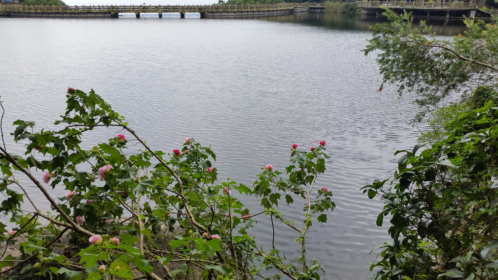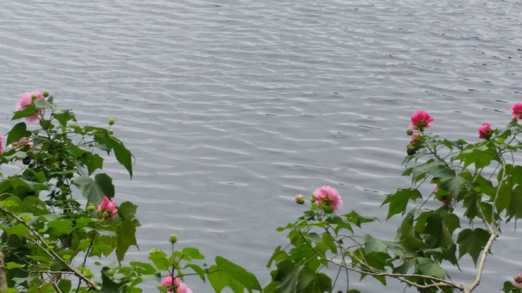 碧水红花。