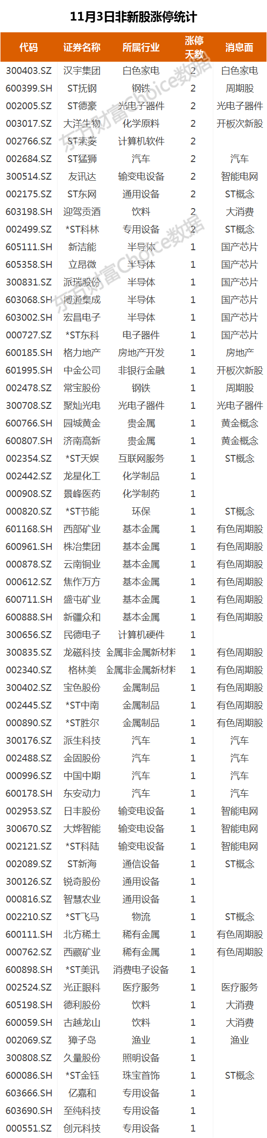 11月3日新股涨停统计今日无上市未开板新股触及涨停。其他股涨停股统计