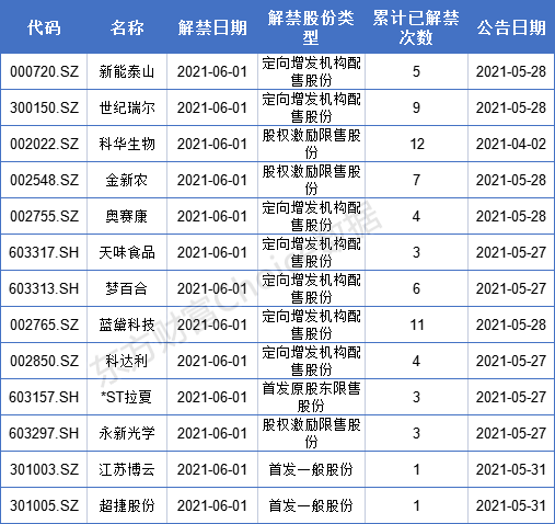 【解禁详情一览】