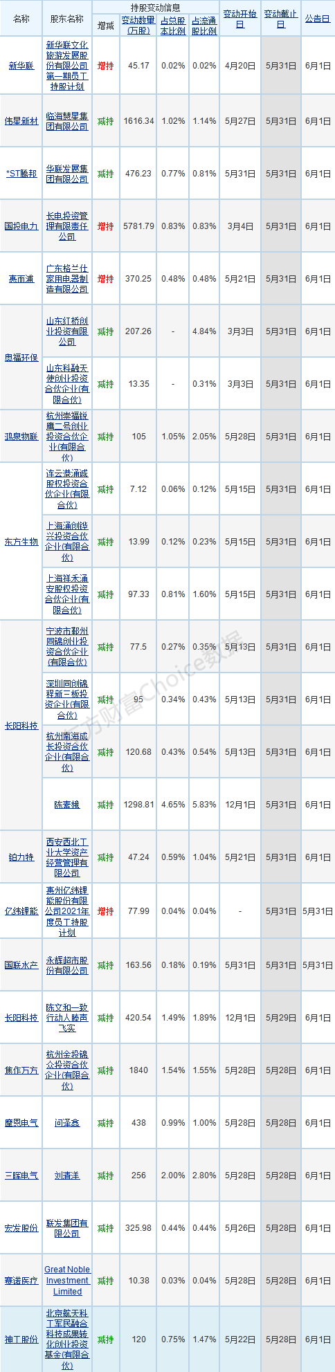【股东增减持变动进展】