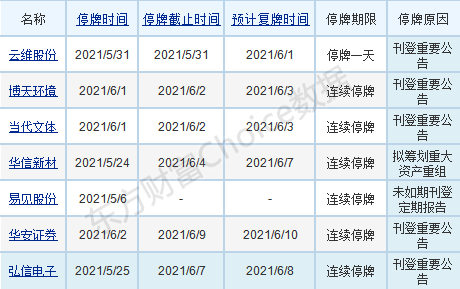 【两市停复牌一览】