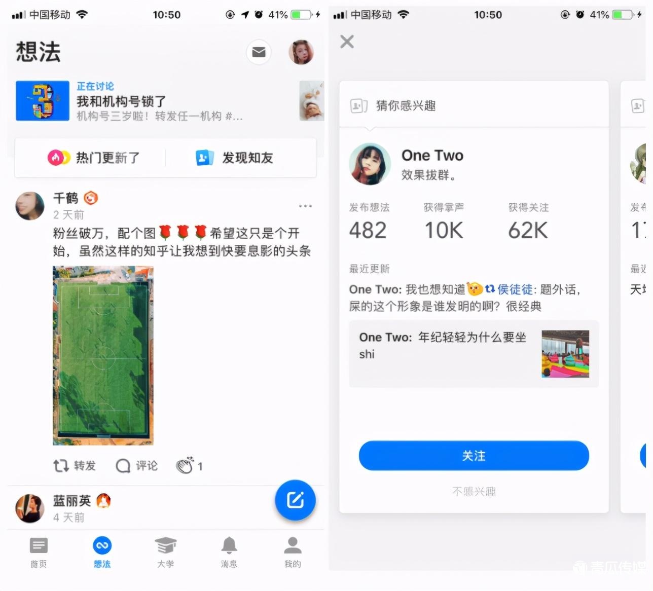 ①通过提供更丰富的内容去留存用户、提供一些专业的大咖给应关注丰富用户的知识面以提升粘度(UGC为主,基本以文字、图片、音频、视频的形式传播干货或资讯);