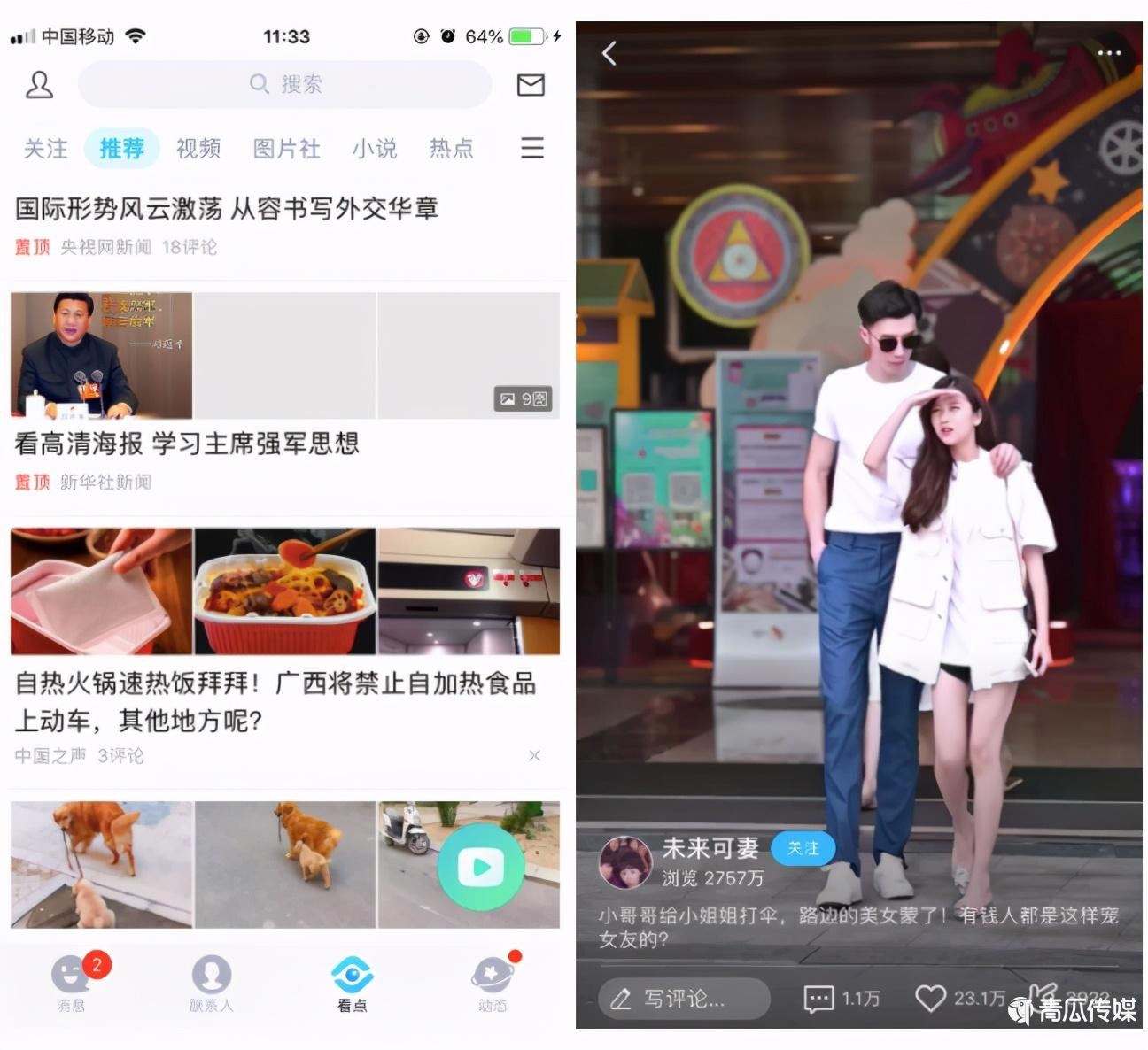 自从微信的崛起,QQ的增长率明显放缓了,即使注册用户还在不断增长,加之头条的社交野心勃勃,通过「看点」引导用户发现更多有趣的内容会对提升用户的使用时长以及提高粘性有直接帮助。