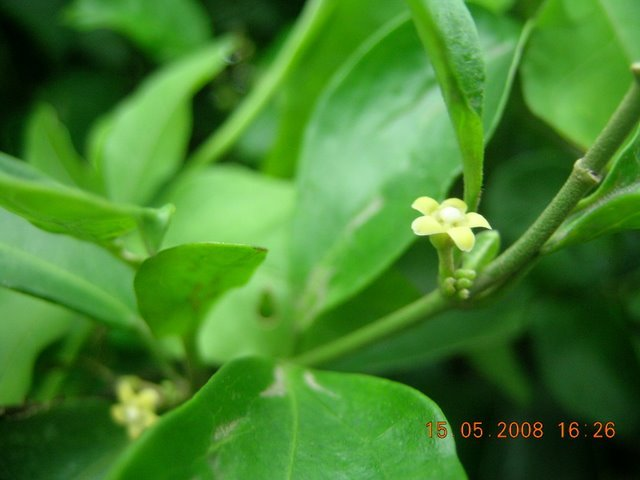 藤本,长可达4米。枝和花序被柔毛。叶对生;倒卵形、卵形或矩圆形,长2.5~3厘米,宽1.5~4厘米,先端钝或短尖,基部狭或浑圆,两面均秃净或仅于脉上被柔毛;叶柄长6~8毫米,被毛,顶端有丛生腺体。伞形聚伞花序腋生,长1.5厘米;萼5裂,裂片卵圆形;花冠钟状,黄色,5裂,直径约4毫米,有5个肉质的小鳞片与花冠裂片互生;雄蕊5,花丝连合成筒状;花柱阔而钝,凹锥形,突出于雄蕊外。蓇葖果坚硬,长约5厘米,基部宽。种子卵圆形,薄而凹陷,有轮生,白色、丝质的毛。花期7月。生于林中或灌木丛中。源自东南亚、印度及非洲局部。