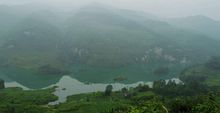 贵州省正安县境内,面积达264平方公里。是因为下游建电站,筑83米高的大坝截流而形成的狭长湖泊,湖面3.56平方公里,总库容约1亿立方米。总航道约50公里,其中主航道长约28公里。航道最宽处不足百米。湖中支流众多,湖汊纵横,小岛星罗棋布,石山错综复杂,仿佛水上迷宫一般。如果从高空向下俯瞰,清溪湖就象一条匍匐在地上的巨龙一样。清溪湖的水下有多种鱼类,水面有多种游禽,山上有珍稀植物,是一个神奇的生命世界。乘船观光,沿岸峭岩如削、钟乳倒悬、飞瀑处处,湖面鱼跃金鳞、水鸟欢鸣、笠翁泛槎,美不胜收。清溪湖上游河流,开发有清溪河漂流,涌满腔激情在画廊中浪遏飞舟,是人生最难得的快事。在清溪湖周围,有九道门、五峰岭、黑龙溪等景点,奇峰耸峙、云遮雾锁、藏奇纳珍,堪比蓬莱瀛洲。整个清溪湖景区,是吸氧洗肺的养生天堂 。折叠景区发展目标通过多功能布局形态和多种文化与业态的融合发展,将清溪湖景区规划建设成为国家5A级旅游景区,国家公园试验区,西南地区地标性旅游景区,贵州省生态与文化休闲旅游聚集区,最终实现云贵一流、全国著名、世界知名的旅游目的地,以及自然与人文并举、文化与生态共融的世界级观光与休闲度假旅游景区。近期目标(2014-2020年):建设清溪湖度假村、清溪湖旅游风情小镇,实现清溪湖游船观光、清溪河漂流、九道门和五峰岭风光区的全面开放。清溪湖游船观光和清溪河漂流项目将于2015年5月1日开放。中期目标(2021-2025年):完成白哨沟温泉小镇、野茶游客接待中心建设,成为国家5A级景区,成为贵州省最具特色的生态文化型休闲旅游产业聚集区,以及云贵一流、全国著名的旅游目的地。远期目标(2026-2030年):实现景区在世界休闲度假旅游目的地的影响力,成为自然与人文并举,文化与生态共融的世界级休闲度假旅游目的地。折叠编辑本段地理气候折叠景区地形清溪湖景区处于云贵高原黔北山地向四川盆地过度的斜坡地带,位于大娄山脉向东北方向延伸腹地。地层处于川黔南北构造带和新华夏构造带的交汇区以及东西向构造的"黔中隆起"之北缘。地形以喀斯特地貌为主,溶洞散布,地下水出露为溪河之源。属中山峡谷地貌,崇山峻岭蜿蜒起伏,异峰突兀悬崖壁立,沟谷深切溪瀑涌注。地形变化多样,陡坡、深谷、台地、丘陵、山间盆地交错分布。海拔高差迥异,最高处金钟山三清殿海拔1714.3米。折叠景区气候清溪湖景区地处中亚热带高原湿润季风气候地区,气候温和、四季分明、雨热同季、冬无严寒、夏无酷暑。年平均气温15.2℃,最热的七月份平均气温25.8℃,最冷的1月份平均气温4.6℃。年平均降雨量1160毫米左右,年平均日照时数在1150小时左右,年平均无霜期在288天左右。折叠景区水文植被清溪湖景区森林覆盖率68℅,由于地势垂直差异大,地貌类型复杂,垂直气候较为明显,形成多层次植物群落。主要山脉为大娄山支脉--金钟山。主要河流为芙蓉江一级支流: