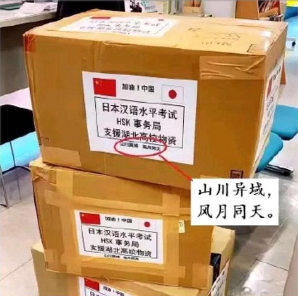 山川异域,风月同天 2024-05-10 23:39:00 折叠 编辑本段 出处 绣袈裟衣缘 作者:长屋王 山川异域,风月同天。寄诸佛子,共结来缘。 折叠 编辑本段 词语释义 我们不在同一个地方,未享同一片山川。但当我们抬头时,看到的是同一轮明月。 折叠 编辑本段 发展历史 《唐大和上东征传》载:"日本国长屋王崇敬佛法,(造)千袈裟,(来施)此国大德众僧,其袈裟(缘)上绣着四句曰:山川异域,风月同天。寄诸佛子,共结来缘。"希望中国高僧能够去日本传授佛法。 2020年2月,日本汉语水平考试事务所捐赠给湖北20000个口罩和一批红外体温计,物资外包装的标签上写着八个字:"山川异域,风月同天"。 赞 (0) 相关推荐 山川异域、风月同天,从扬州大明寺到奈良唐招提寺 "山川异域.风月同天",谁也没有想到,一场疫情带火了千年前的偈语,并引发了一场热火朝天的争论,今天这篇文章不争论是非,只想说说这八个字后面的故事. 在日本汉语水平考试HSK事务所支 ... 苗怀明:你或许不知道的“山川异域,风月同天”那些事(闭门说书之六) 尽管一再延期,新学期还是马上要开学了,虽然大家所学科目不同,但笔者认为,所有的课程都要从仍在进行中的疫情讲起. 日本捐助救灾物质 在这个漫长的寒假里,肆虐的冠状病毒给我们每个人都上了一课,这注定是刻骨 ... 这一次,日本慈善风雅暖人 昨日(1月31日),网友@扎宝于13:14发出的一条微博,迅速火遍全网: 扎宝 1月31日 13:14 来自 微博 weibo.com 日本汉语水平考试HSK事务所捐赠给武湖北的物资,20000个口罩 ... 疫下诗词(1):山川异域,风月同天 山川异域,风月同天. 山川异域!风月同天! -- 一遍遍地,我默念着这两句话,于无声处,却似有惊雷响起,振林樾,惊山谷,遏行云. 工整的对仗,起落的平仄."山川"对"风月 ... 傅继英艺术世界书画作品分享:山川异域风月同天 67*137CM 2021.08.22 傅继英艺术世界书画作品分享:山川异域风月同天 67*137CM 2021.08.22 柳杰钦:山川异域,风月同天 投稿邮箱 297235310@qq.com 生于非典,考于新冠,没有自主加分,没有复读机会,拥有最奢侈的寒假生活. ----题记 硝烟无形,尘埃弥漫,刀光剑影中一盏仙壶济世悬;沙场无情,人间有义 ... 山川异域 风月同天│海外内100位中医助力华人华侨共克时艰 天涯海角隔不开海外侨胞的赤子之心,国内疫情爆发之时,广大海外侨胞以各种方式将口罩.防护服.呼吸机等紧缺防疫物资送回国内,助力祖国抗击疫情.如今,国内疫情形势虽趋稳,海外疫情却愈发严峻,医疗机构人满为患 ... 山川异域 风月同天丨从网球世界看人类命运共同体 2月16日,笔者曾经在网球之家的短图文圈子发表过这样一段文字: "此刻,在推特看有关网球的资讯,内心无比孤独--可能是我视野狭窄有些信息没看到,如果有请告诉一声好吗? 我的祖国和同胞正在经历 ... 观点| 山川异域,风月同天:论日本与汉文化的渊源 在中国陷入疫病危机之后,世界各国都对中国施出了援手,但是比起卸了23吨物资转头就跑的铁憨憨俄罗斯,日本无疑要会说话的多,"山川异域,风月同天"更是一度刷爆朋友圈,几次霸占热搜. 后 ... 2月8日∣山川异域,风月同天 2月8日,元宵节. 冰箱里有一包囤货的汤圆,是果仁味儿的,不是我最爱的黑芝麻馅儿.有总胜过无,非常时期,不能任性,要惜福.晚餐的时候,三宝同学一定要遵守姥姥的"圣旨":包饺子.于是 ... 中日文学交往中,不乏“山川异域,风月同天”的文学遗产 狄霞晨 | 中日文学交往中的"山川异域,风月同天"日期:2020年02月14日 13:19:54 作者:狄霞晨连日来,我们被日本驰援中国抗击新冠疫情的物资包装上的诗句所感动.&qu ...