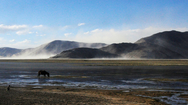 忽的一阵大风尘土飞扬,远方一片白茫茫萨尔乡