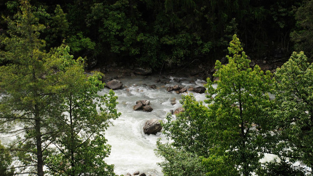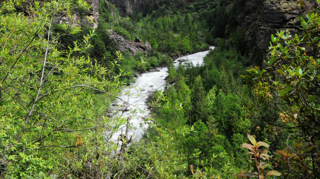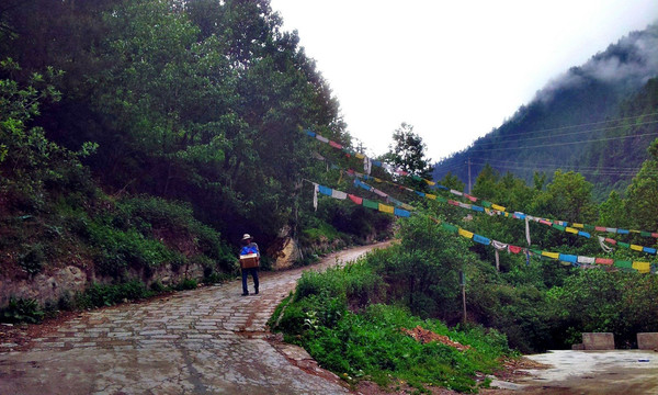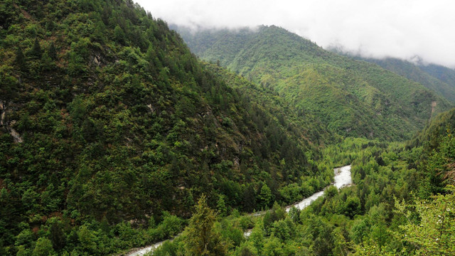 出发了!一出县城就进入盘山公路,这一带的植被依然丰富,一条忽隐忽现的小溪一直伴随着我们。