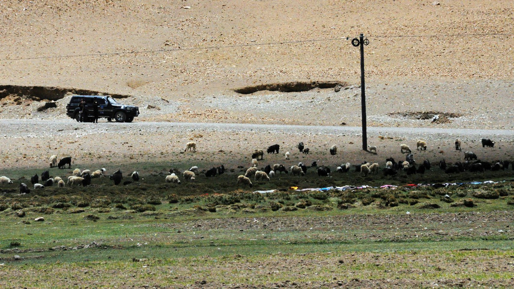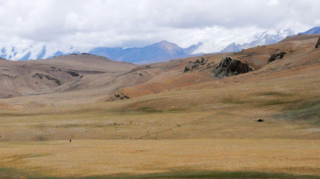 远处的牧民和羊群,仔细看还有个帐篷,信息量太大了。。。。。