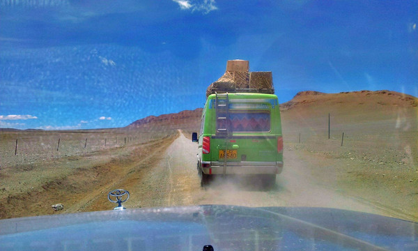 终于看到岗巴县城了,这辆班车还在我们前面晃悠岗巴县