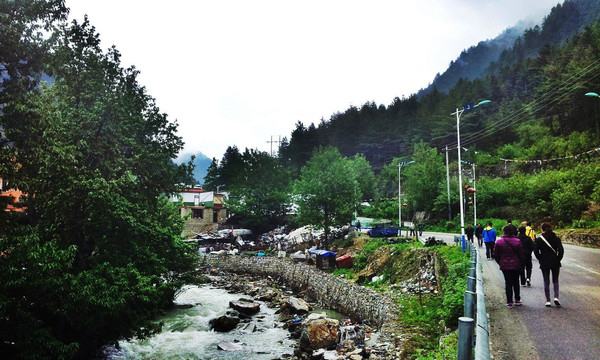大家吃了“玉包子”,稀稀拉拉往回走。旁边的小河中还可以看到因地震冲下来的山石。