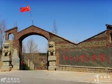 行约七八公里,就到了长城口上的红山脚下。清代榆林著名书法家陈璋,曾写过:"三山拱翠"的匾额,就是形容榆林古城北依红山,东据驼峰,西临黑山的形胜。红山红石头,驼峰黄土丘,黑山黑土岭,三座颜色不同的山拱卫着翡翠般碧绿的榆林城。到了红山,就可看见一座俊秀挺拔的山门楼子,门洞上方镌刻着"红石峡"3字,这是我国著名美术家、教育家王森然先生的遗墨。王森然先生早年曾在榆林中学执教,传播新文化,是刘志丹将军的导师。越过门楼,首先扑面而来的是两边东西相峙的赭色石崖,崖壁上布满了星罗棋布的石刻题匾和大大小小的洞窟。沿壁根石阶而下,绿荫掩映间,一条碧水穿峡而过,潺潺作响,徜徉于双崖壁立的峡间。