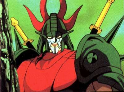 原本是战国时期的地方领主。由于忧虑无力的自身,而寻求可以平定战乱的强大力量,成为了妖邪帝王阿罗醐麾下の鬼魔将,而令斗士们痛苦不堪。多次作战失败后,虽然被地灵众洗脑,但在迦雄须的帮助下作为忠的战士而觉醒。之后继承了迦雄须的意志,对阿罗醐举起了反旗。最后为了解除同样被洗脑的迦游罗的咒缚,托付了自身的铠甲"贵力"。武器:锁镰『邪鬼镰』,必杀技:『红雷闪』