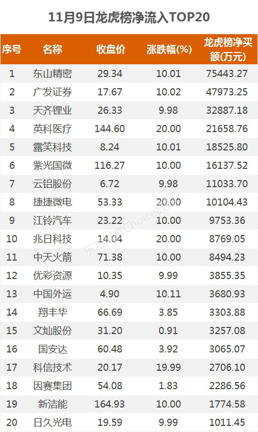 龙虎榜:7.54亿资金抢筹东山精密 机构净买这13股