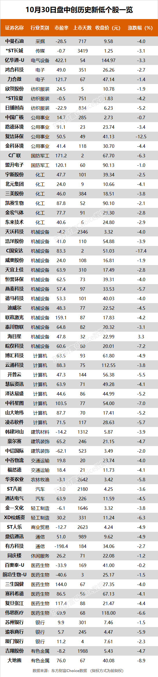 10月29日,沪指收报3224.53点,跌1.47%。东方财富Choice数据显示,今日有49只个股盘中股价创历史新高。其中,个股包括阳光电源、海川智能等。