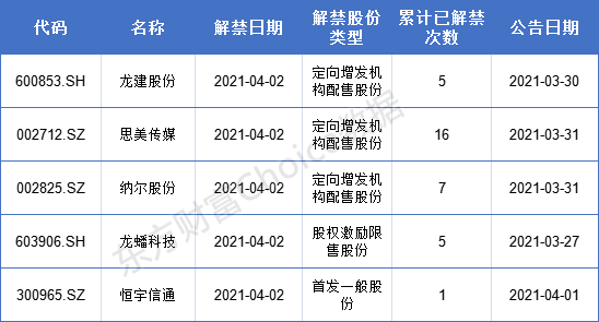 【解禁详情一览】