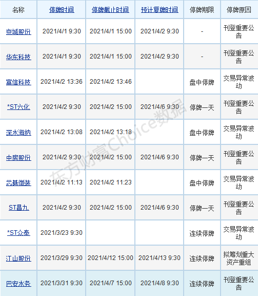 【两市停复牌一览】