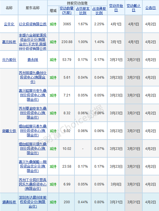 【股东增减持变动进展】