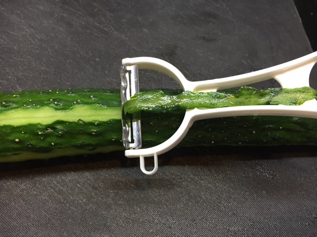 2. 把青瓜洗淨後,把青瓜梅花間竹地去皮,賣相更美。